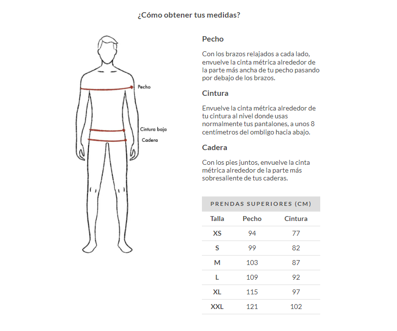 Guia de Tallas (Hombre)